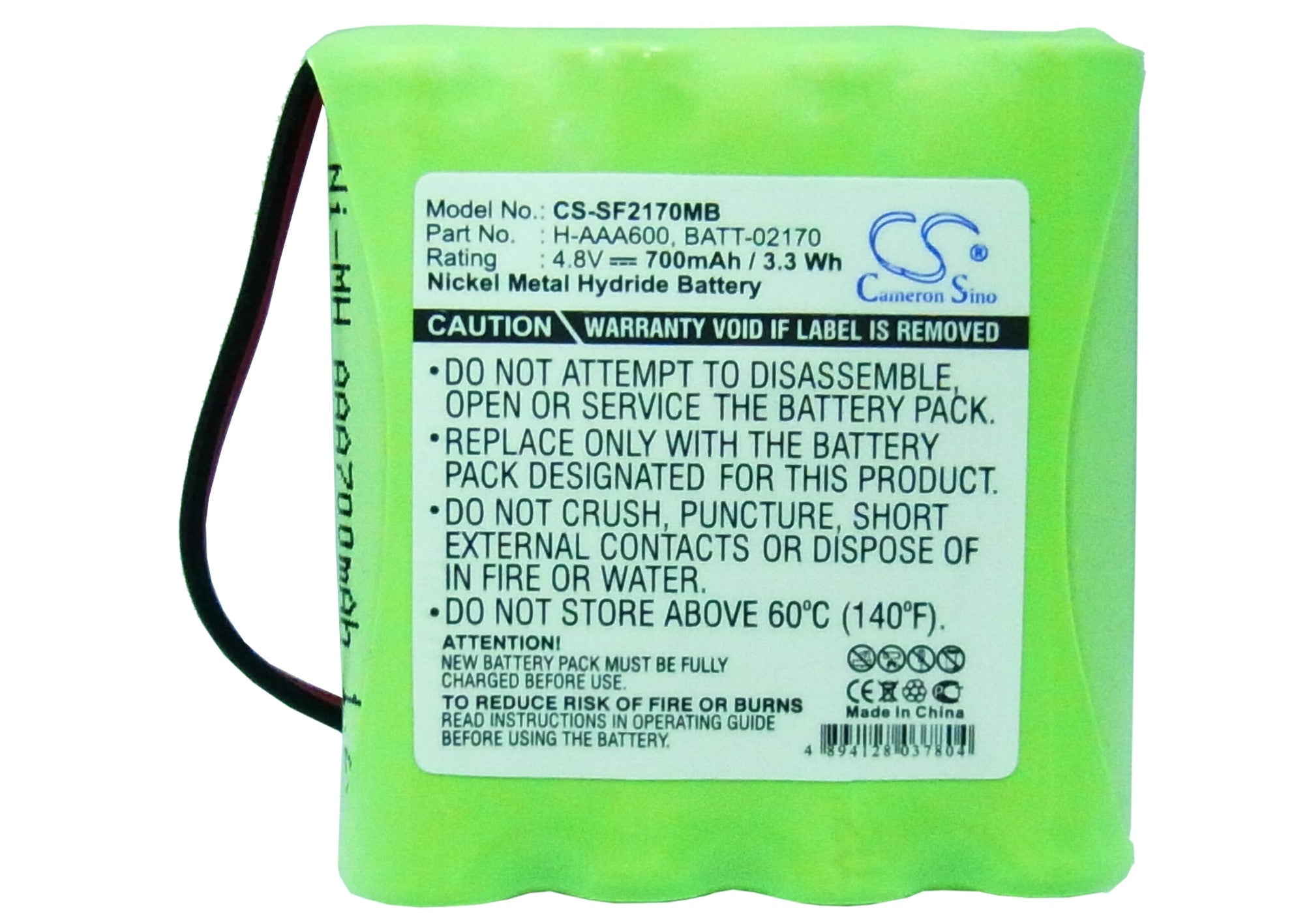 Compatible partnumbers: BATT-02170, H-AAA600