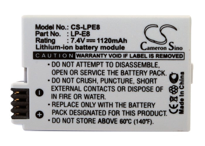 Battery for Canon EOS Rebel T3i LP-E8 7.4V Li-ion 1120mAh / 8.29Wh