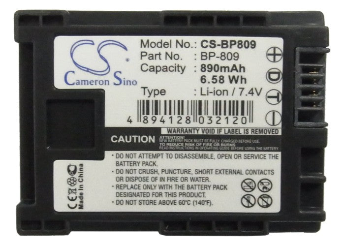 Battery for Canon VIXIA HFM41 BP-809, BP-809/B, BP-809/S 7.4V Li-ion 890mAh