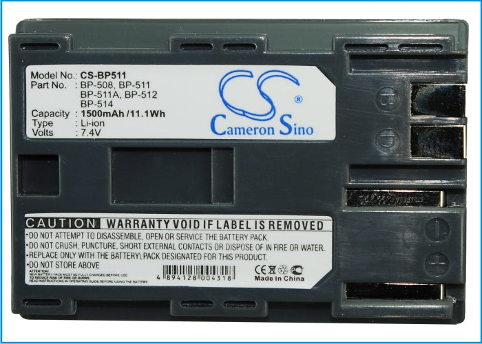 Battery for Canon ZR65MC BP-508, BP-511, BP-511A, BP-512, BP-514 7.4V Li-ion 150