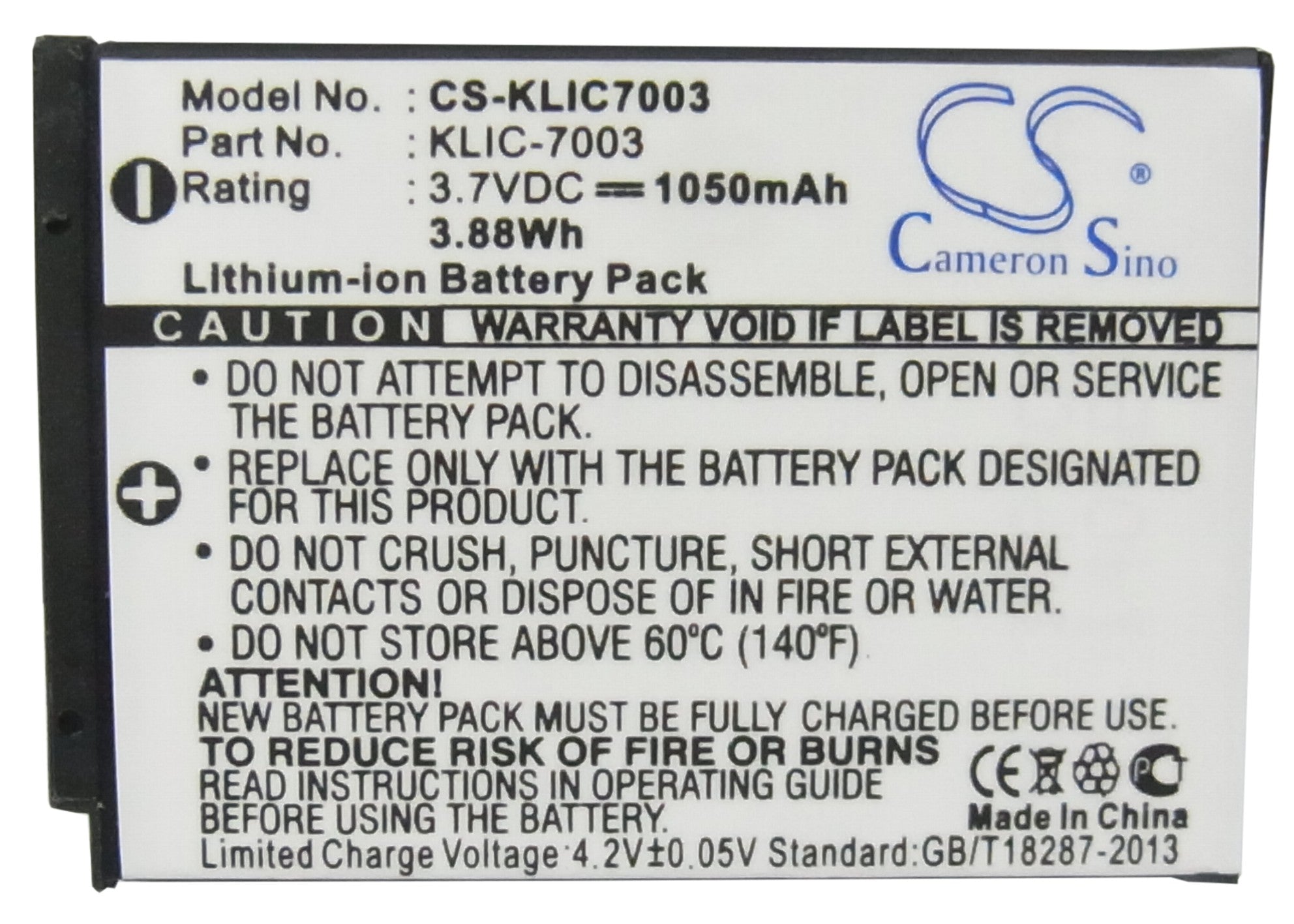 Battery for Kodak EasyShare Z950 KLIC-7003 3.7V Li-ion 1050mAh / 3.89Wh