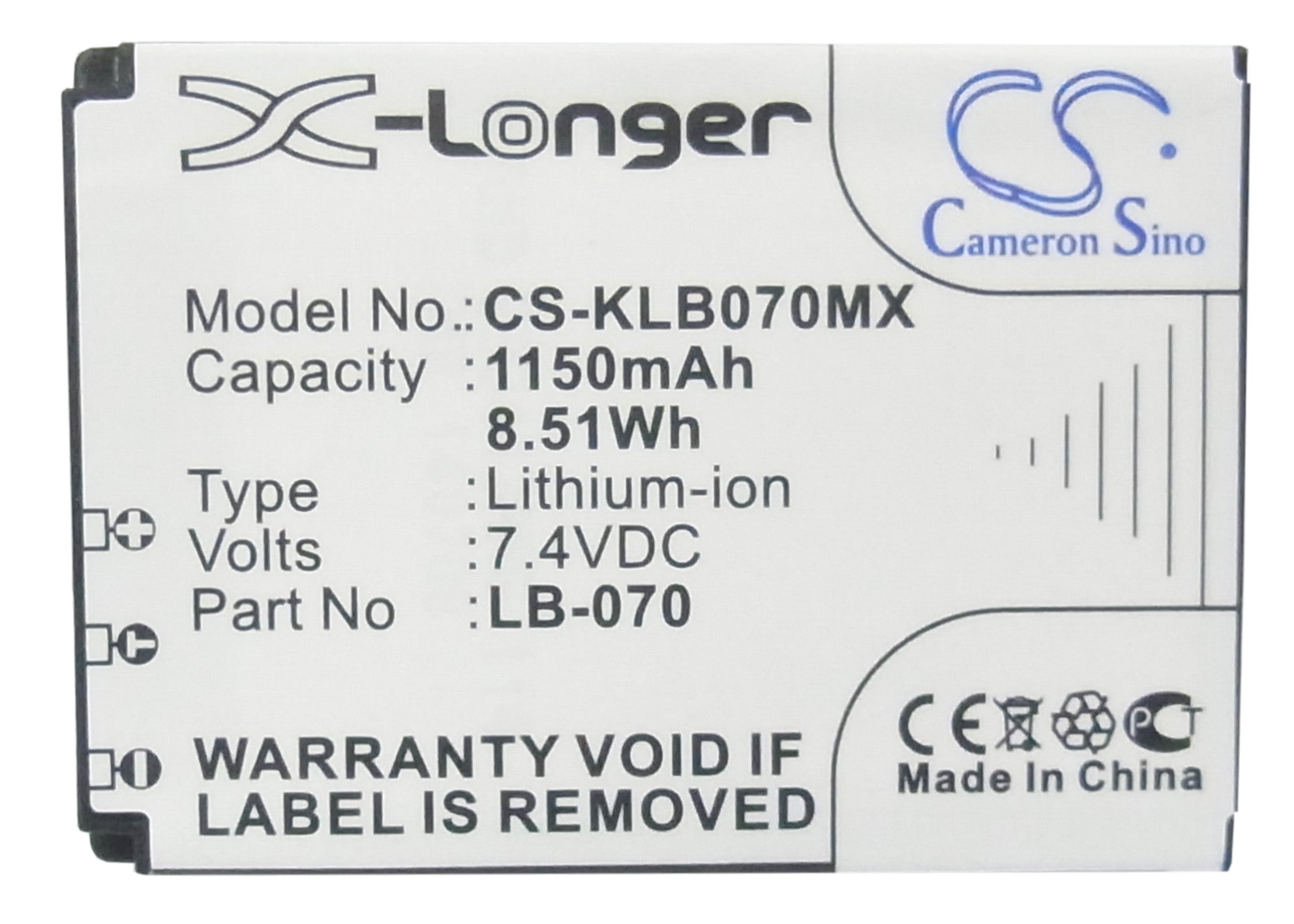 Battery for Kodak Pixpro AZ651 Astro Zoom LB-070 7.4V Li-ion 1150mAh / 8.51Wh