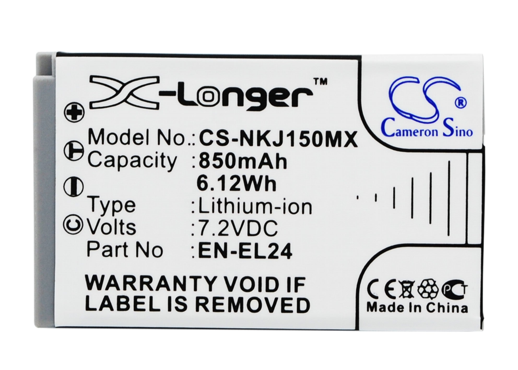 Battery for Nikon 1 J5 EN-EL24, VFB11901 7.2V Li-ion 850mAh / 6.12Wh