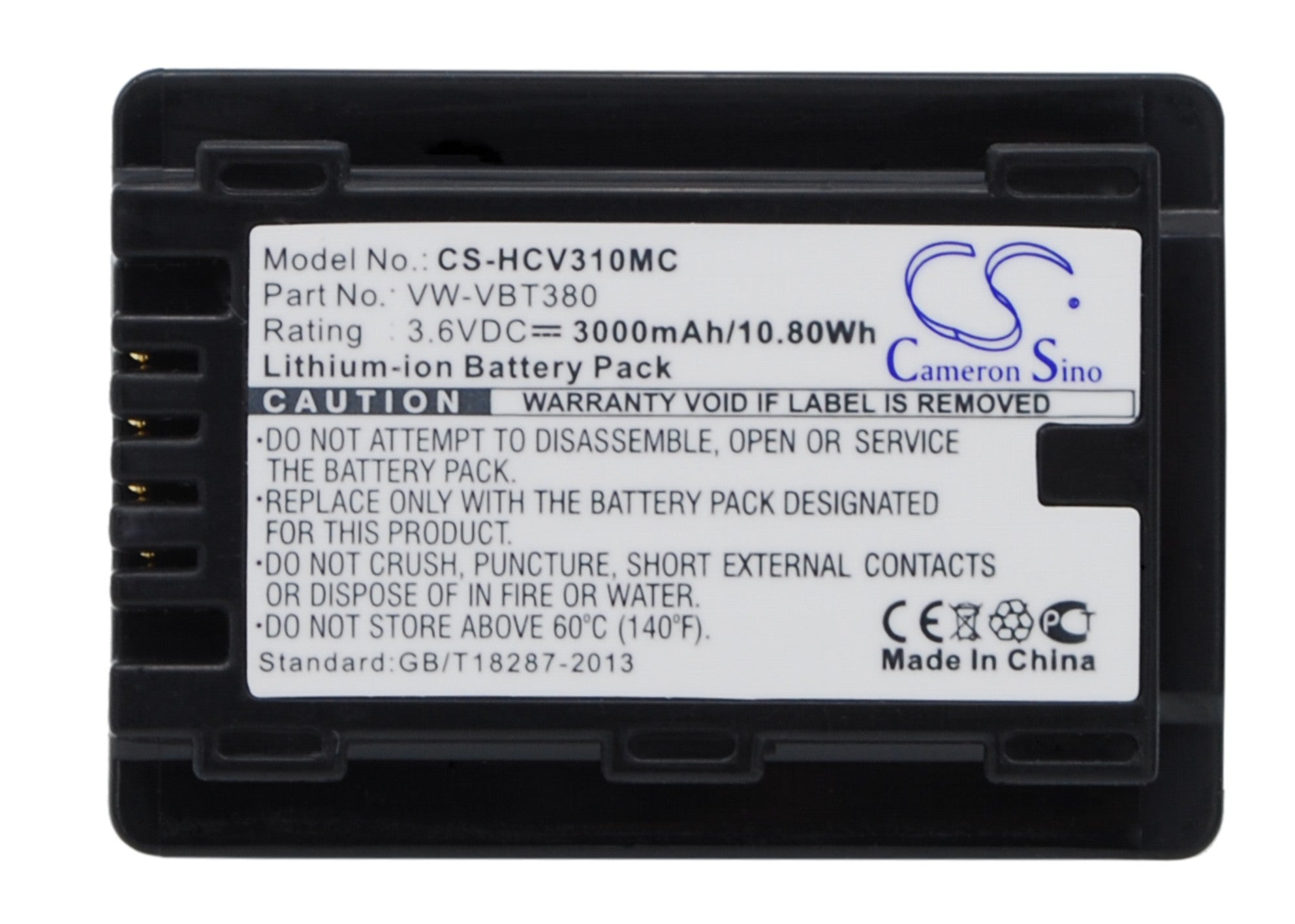 Battery for Panasonic HC-V270 VW-VBT190 3.6V Li-ion 3000mAh / 10.80Wh