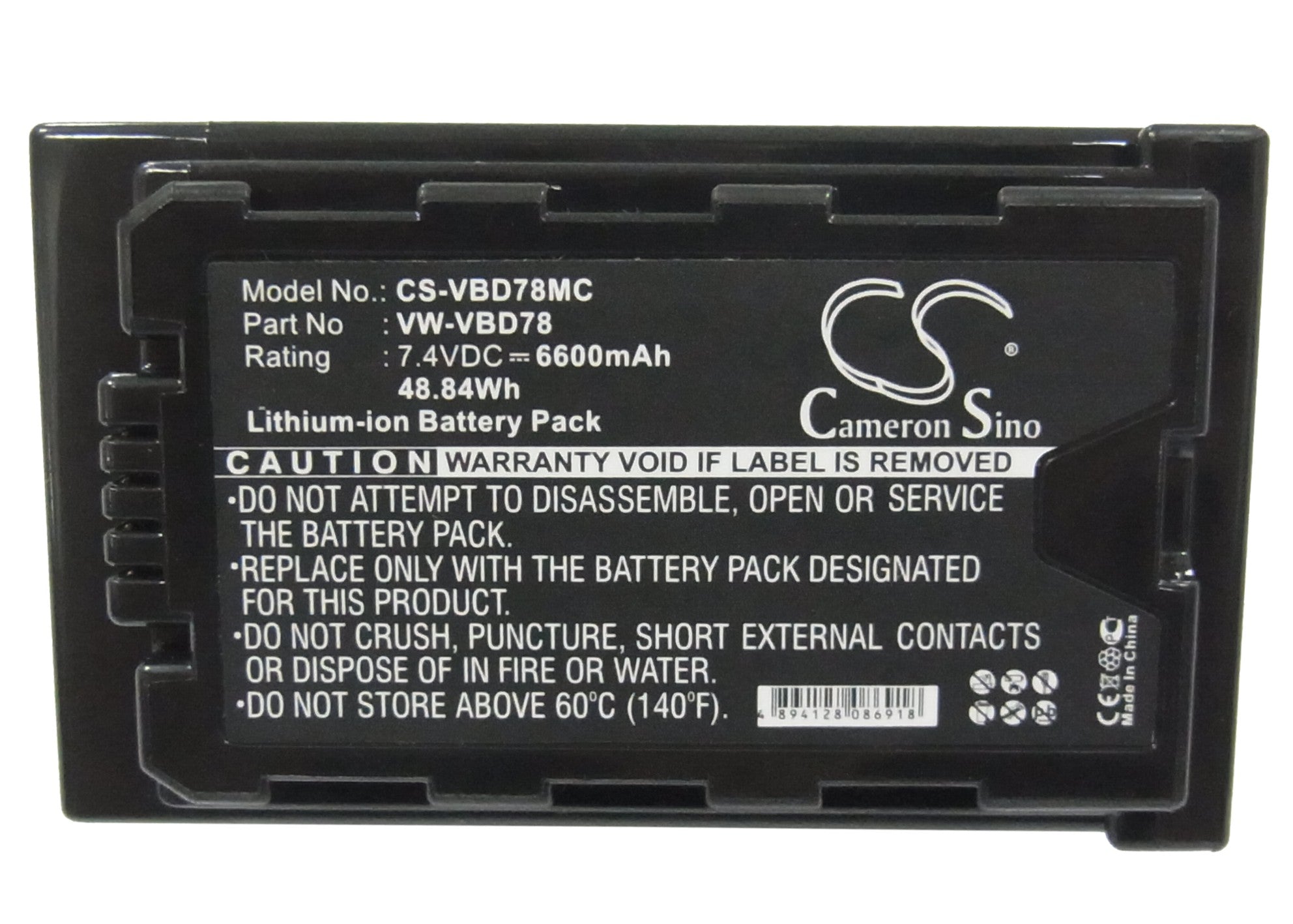 Battery for Panasonic HDC-MDH2GK VW-VBD78 7.4V Li-ion 6600mAh / 48.84Wh