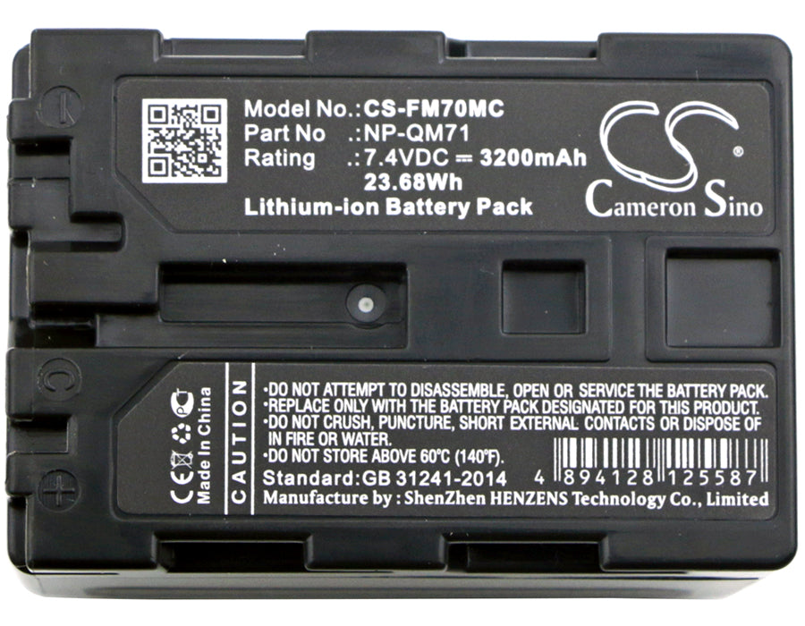 Battery for Sony DCR-TRV27 NP-FM70, NP-FM71, NP-QM70, NP-QM71 7.4V Li-ion 3200mA
