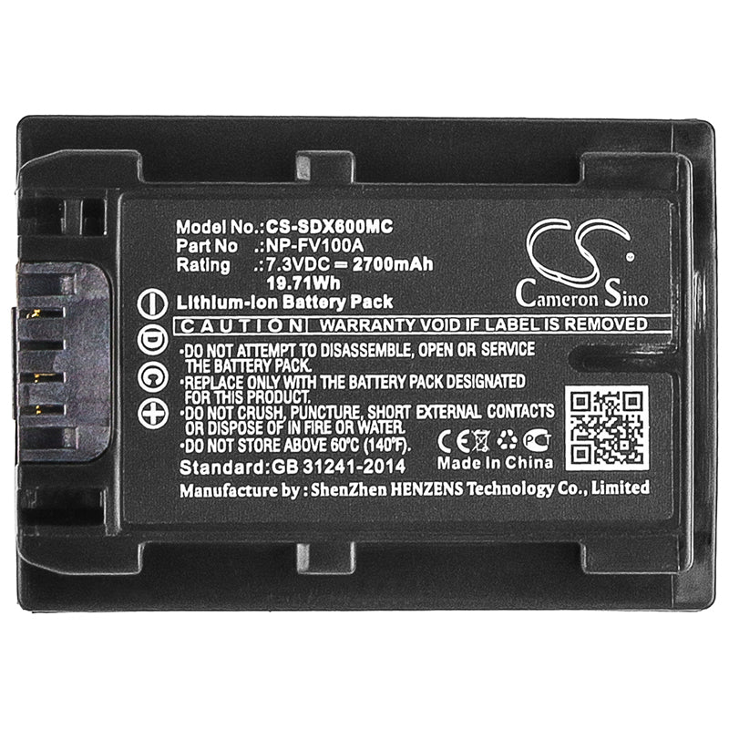 Battery for Sony HDR-CX680 NP-FV100A 7.3V Li-ion 2700mAh / 19.71Wh