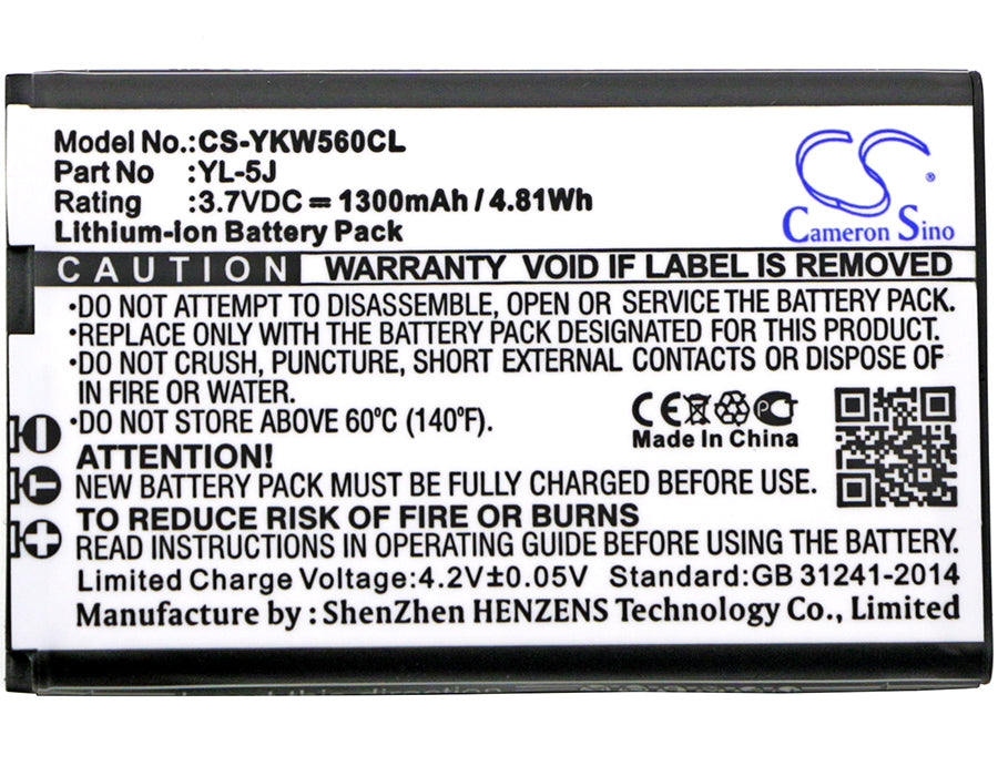 Battery for Yealink W56H YL-5J 3.7V Li-ion 1300mAh / 4.81Wh