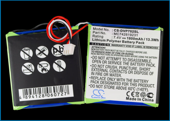 Battery for Dual DVD-P702 MC742819231 7.4V Li-Polymer 1800mAh