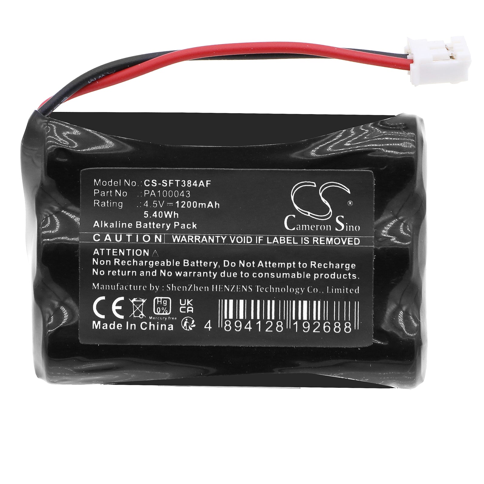 Battery for Safe-O-Tronic LS 198182, 38400200, PA100043 4.5V Alkaline 1200mAh /