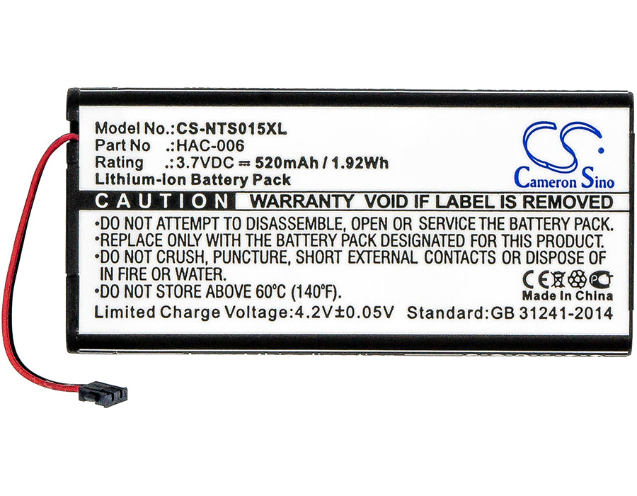 Battery for Nintendo HAC-A-JCR-C0 HAC-006, HAC-BPJPA-C0 3.7V Li-ion 520mAh / 1.9