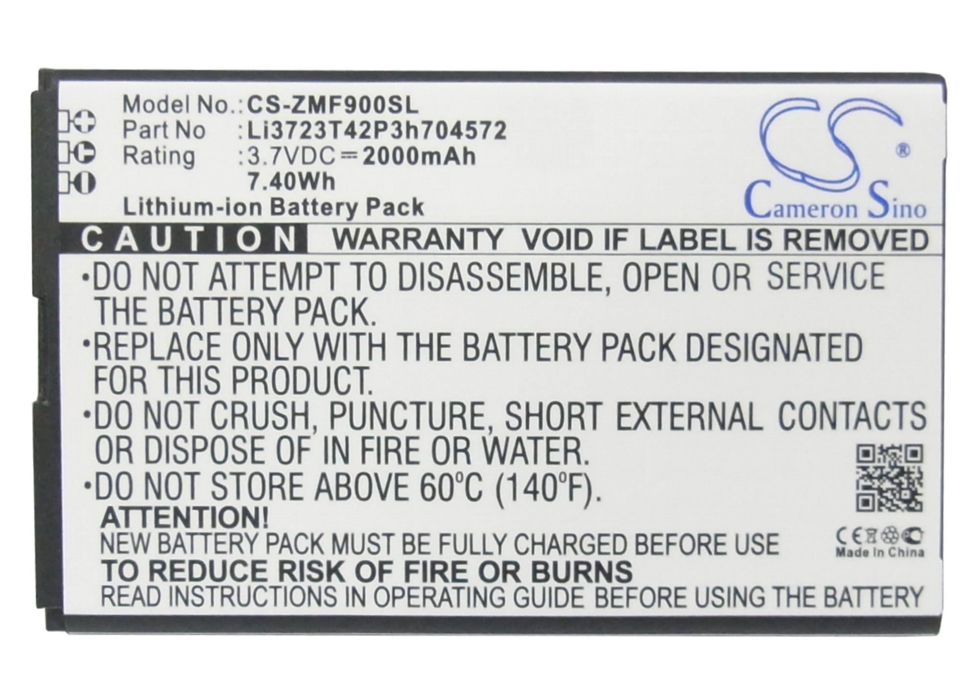 Capacity: 2000mAh / 7.40Wh