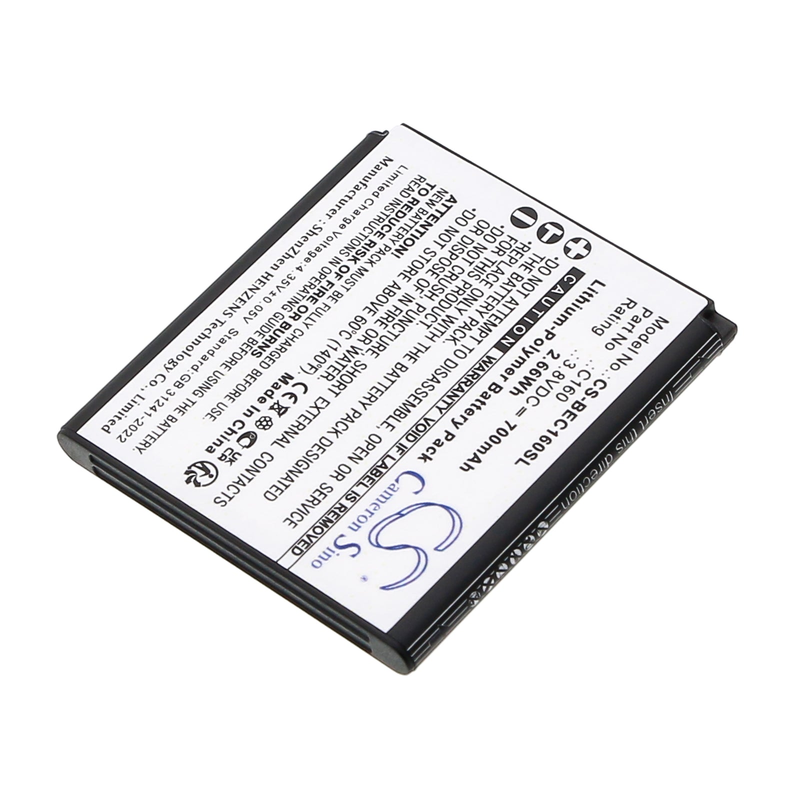 Capacity: 700mAh / 2.66Wh