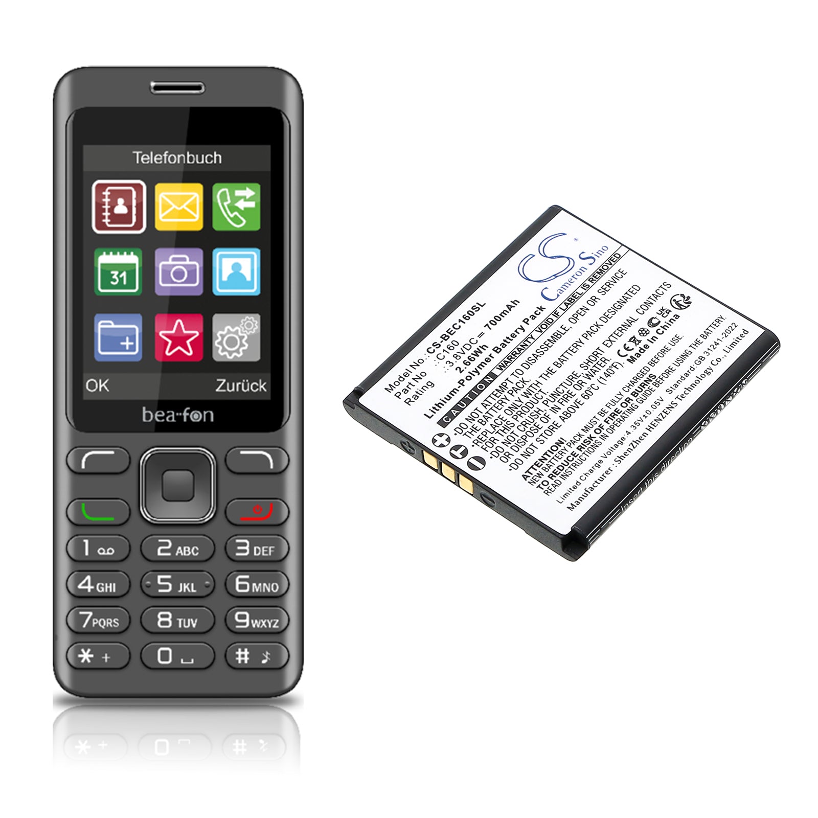 This battery is compatible with: Bea-fon C160 Schwarz