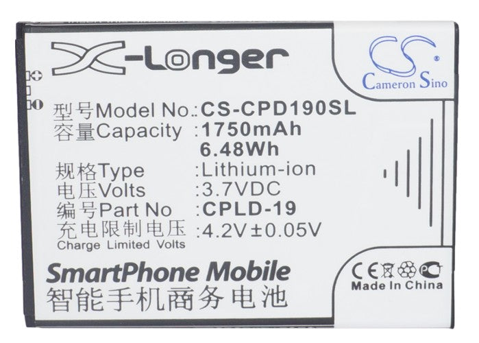 Battery for Coolpad 7295 CPLD-115, CPLD-116, CPLD-19 3.7V Li-ion 1750mAh / 6.48W