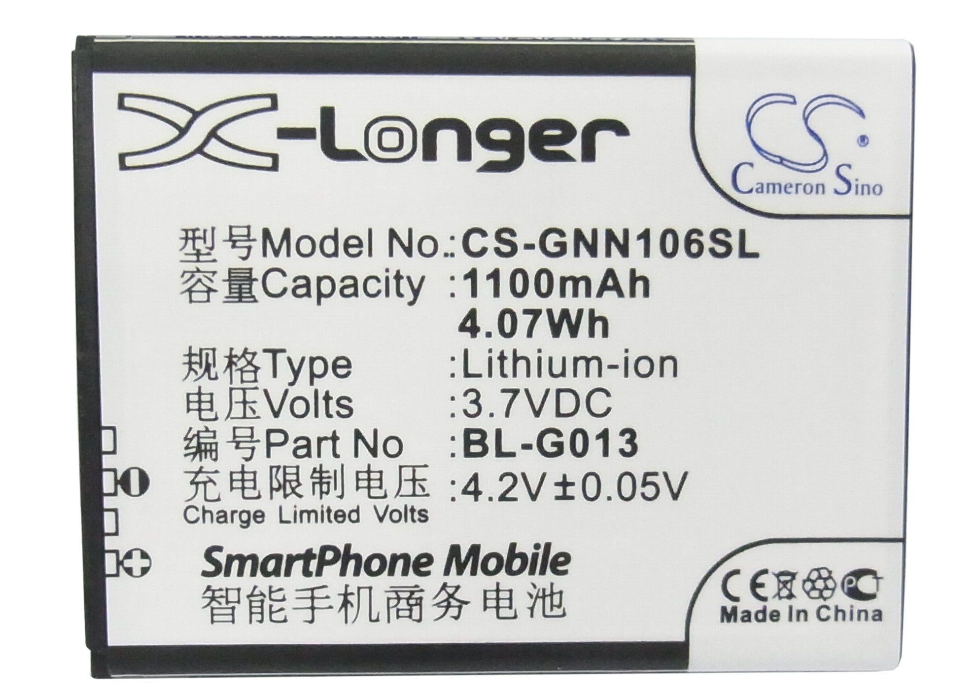 Battery for GIONEE GN109 BL-G013 3.7V Li-ion 1100mAh / 4.07Wh