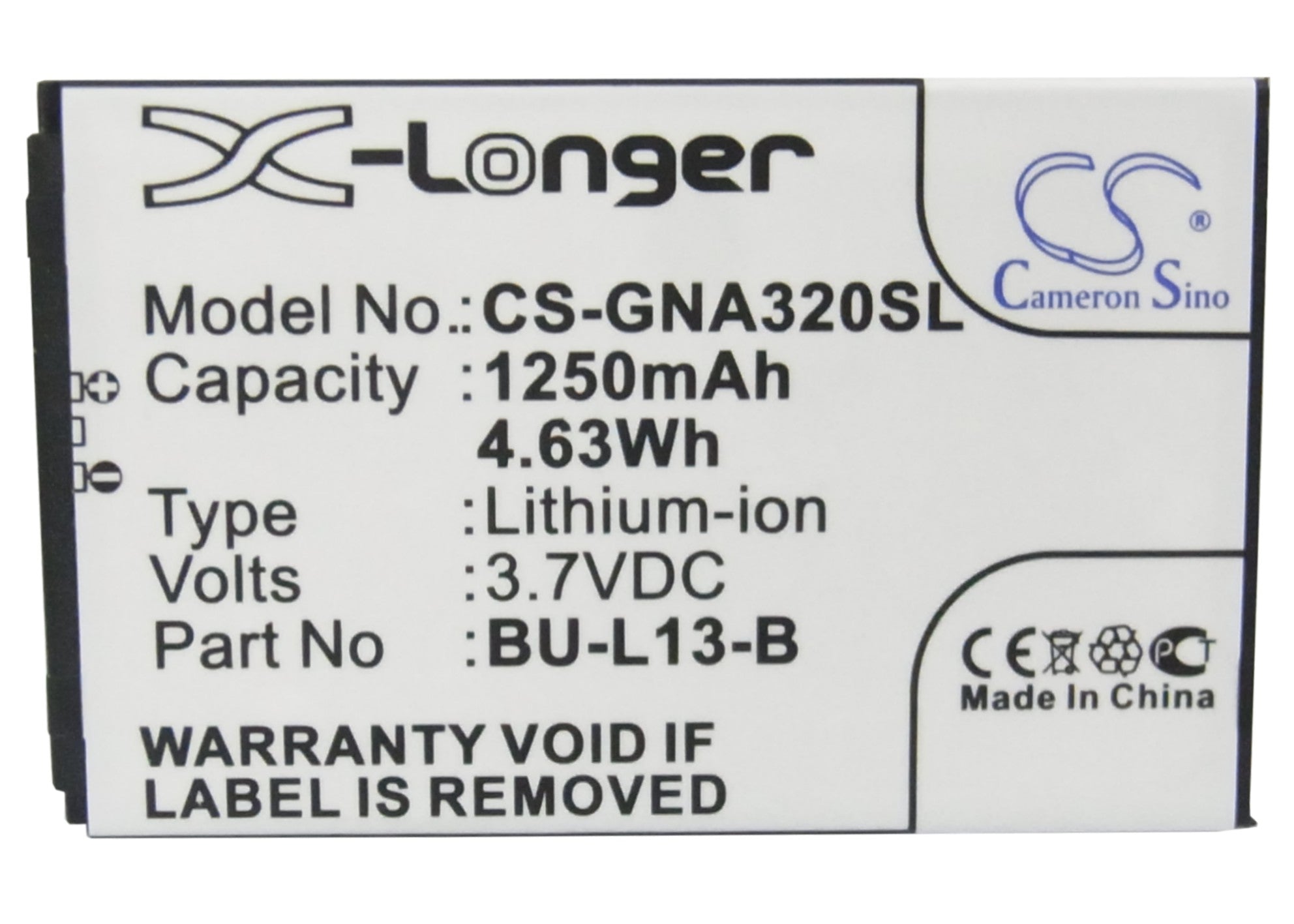 Battery for GIONEE W360 BU-L13-B 3.7V Li-ion 1250mAh / 4.63Wh