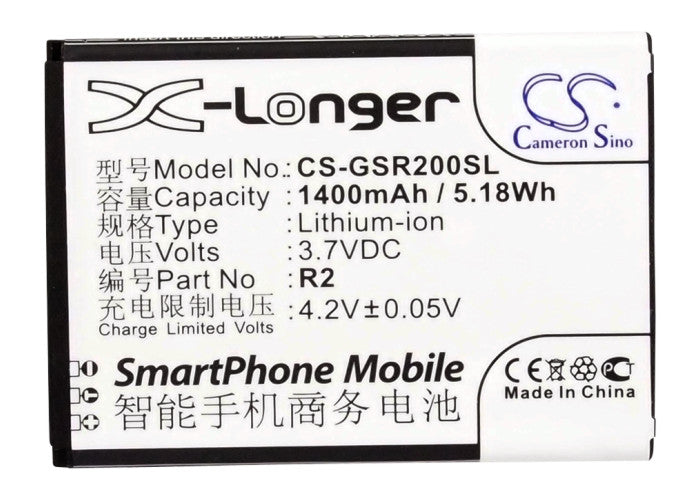 Battery for GSmart Roma R2 R2 3.7V Li-ion 1400mAh / 5.18Wh