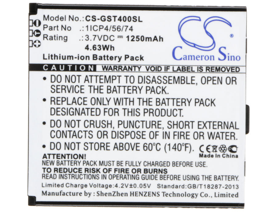 Battery for GSmart T4 Lite Edition 1ICP4/56/74 3.7V Li-ion 1250mAh / 4.63Wh