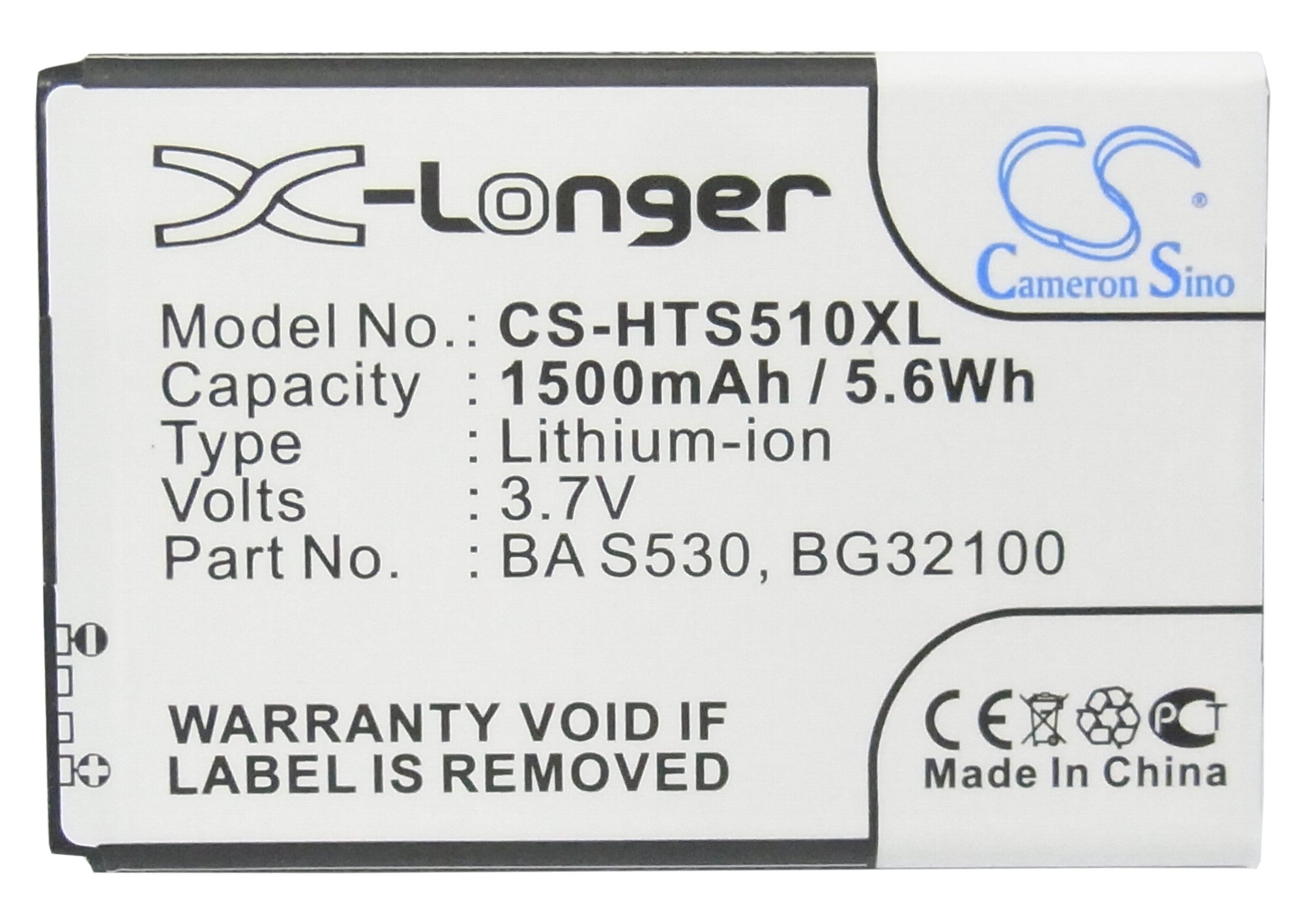 Battery for HTC C510 35H00152-00M, 35H00159-00M, BA S530, BA S590, BG32100, BH11