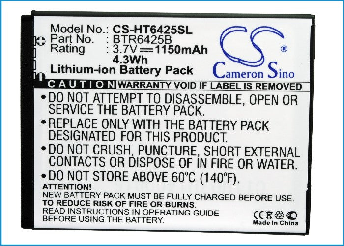 Battery for HTC Desire SV 35H00168-02M, 35H00168-03M, 35H00168-06M, BH98100, BTR