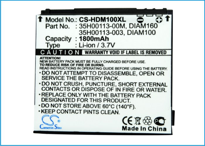 Battery for HTC Diamond 100 35H00113-003, DIAM160 3.7V Li-ion 1800mAh / 6.66Wh