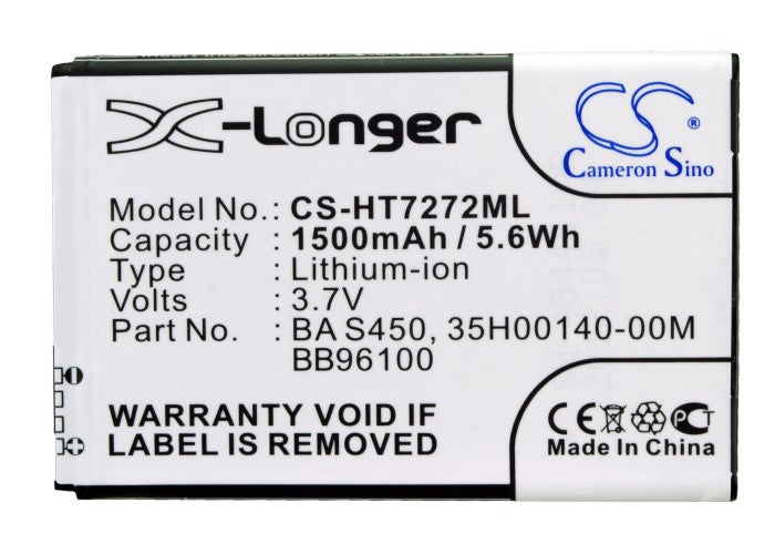 Battery for HTC Freestyle 35H00140-00M, 35H00140-01M, BA S450 3.7V Li-ion 1500mA
