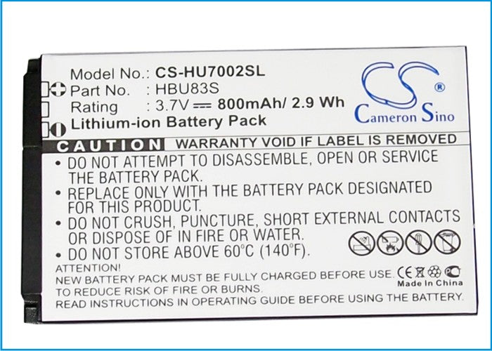 Battery for Huawei C2909 HBC80S, HBC85S 3.7V Li-ion 800mAh / 2.9Wh