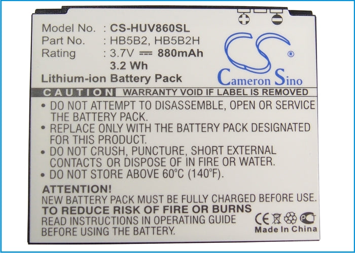Battery for Huawei C5990 HB5B2, HB5B2H 3.7V Li-ion 880mAh / 3.2Wh