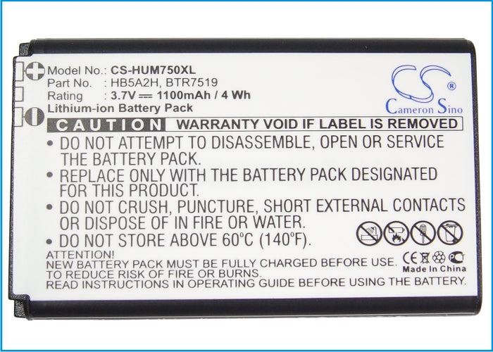 Battery for Huawei U7510 BTR7519, HB5A2H 3.7V Li-ion 1100mAh / 4.07Wh