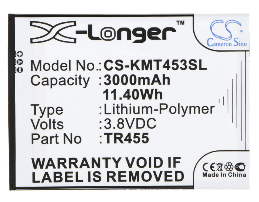 Battery for KAZAM TR45544044-01 TR455, TR455-VKVCD0004151 3.8V Li-Polymer 3000mA
