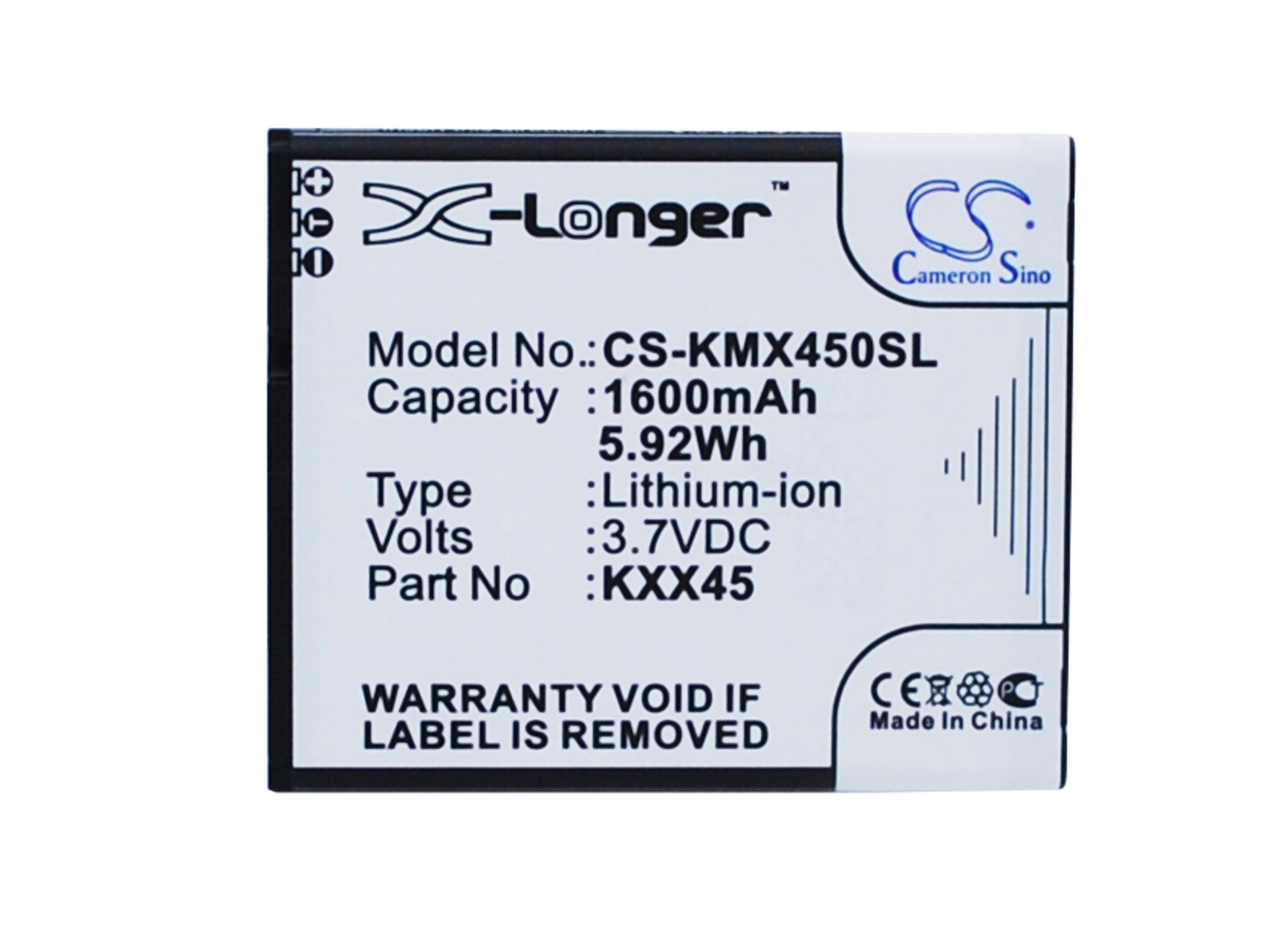 Battery for KAZAM Trooper2 4.5 KXX45, KXX45STSBJ004840 3.7V Li-ion 1600mAh / 5.9
