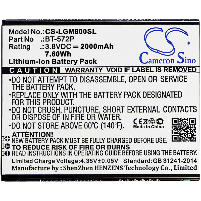 Battery for Leagoo M8 BT-572P 3.8V Li-ion 2000mAh / 7.60Wh