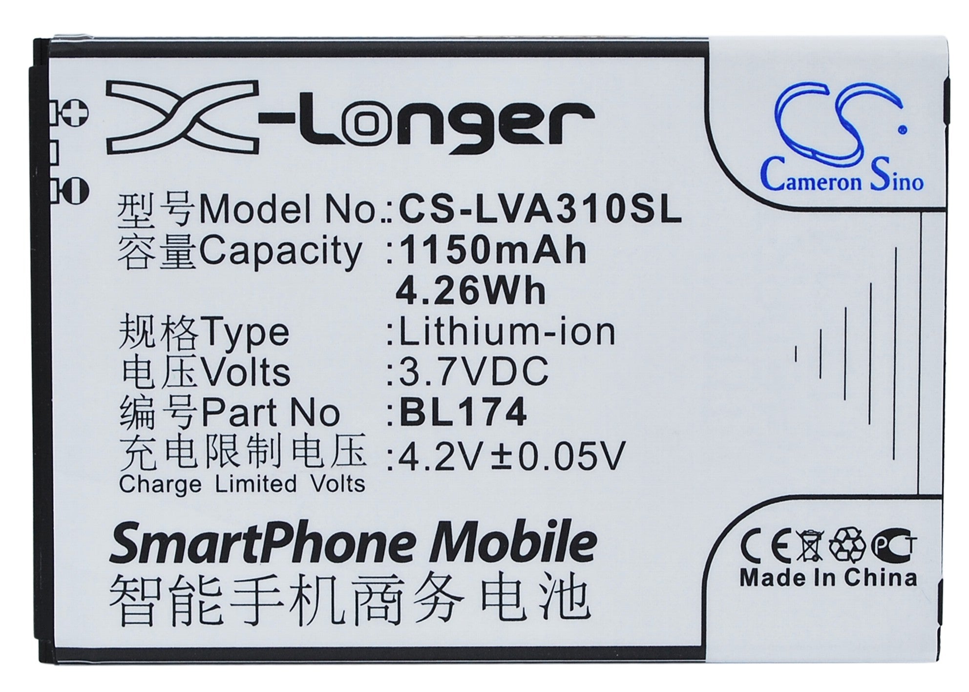 Battery for Lenovo A30t BL174 3.7V Li-ion 1150mAh / 4.26Wh