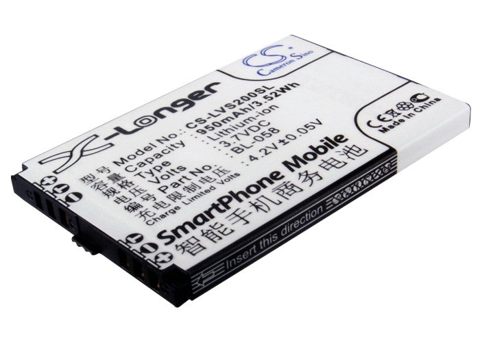Battery for Lenovo I817 BL-058, BL-068, BL-072 3.7V Li-ion 950mAh / 3.52Wh