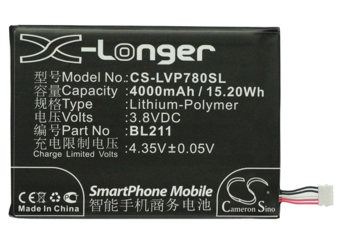 Battery for Lenovo P780 BL211 3.8V Li-Polymer 4000mAh / 15.20Wh