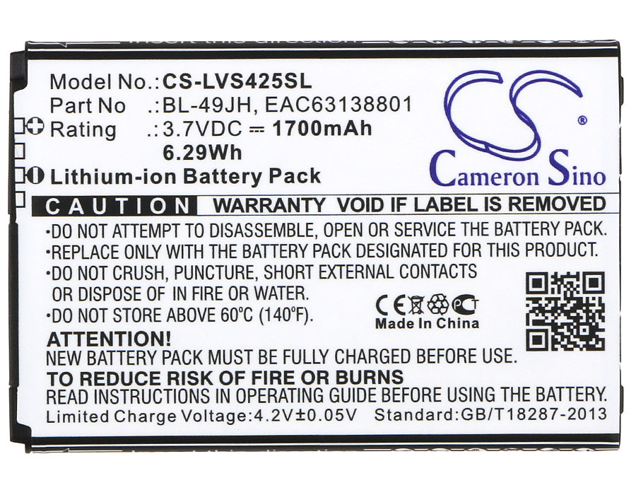Battery for LG K120AR BL-49JH, EAC63138801 3.7V Li-ion 1700mAh / 6.29Wh