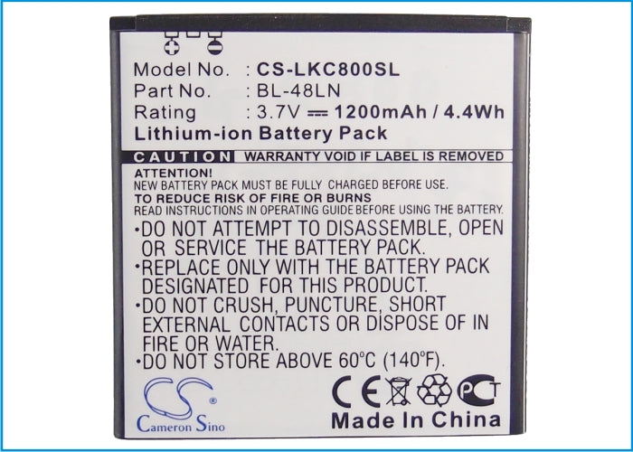 Battery for LG P725 BL-48LN 3.7V Li-ion 1200mAh / 4.44Wh