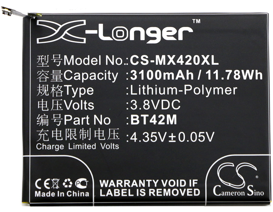 Battery for Meizu M1 Metal BT42M 3.8V Li-Polymer 3100mAh / 11.78Wh