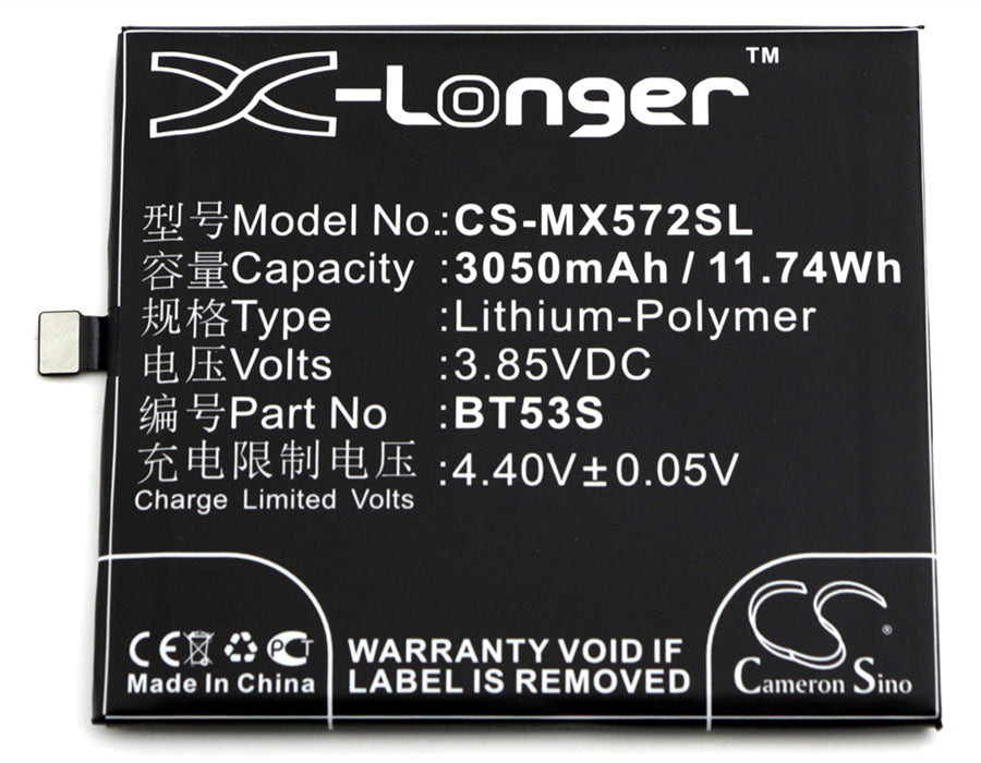 Battery for Meizu M570Q-S Dual SIM TD-LTE BT53S 3.85V Li-Polymer 3050mAh / 11.74
