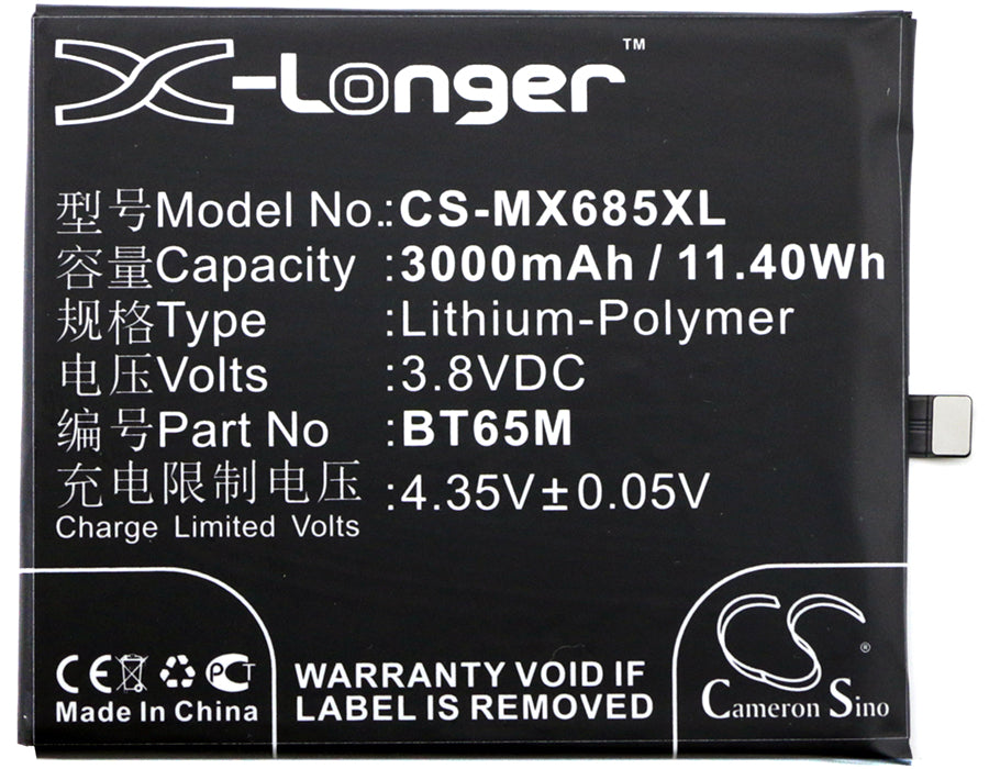 Battery for Meizu M685Q BT65M 3.8V Li-Polymer 3000mAh / 11.40Wh