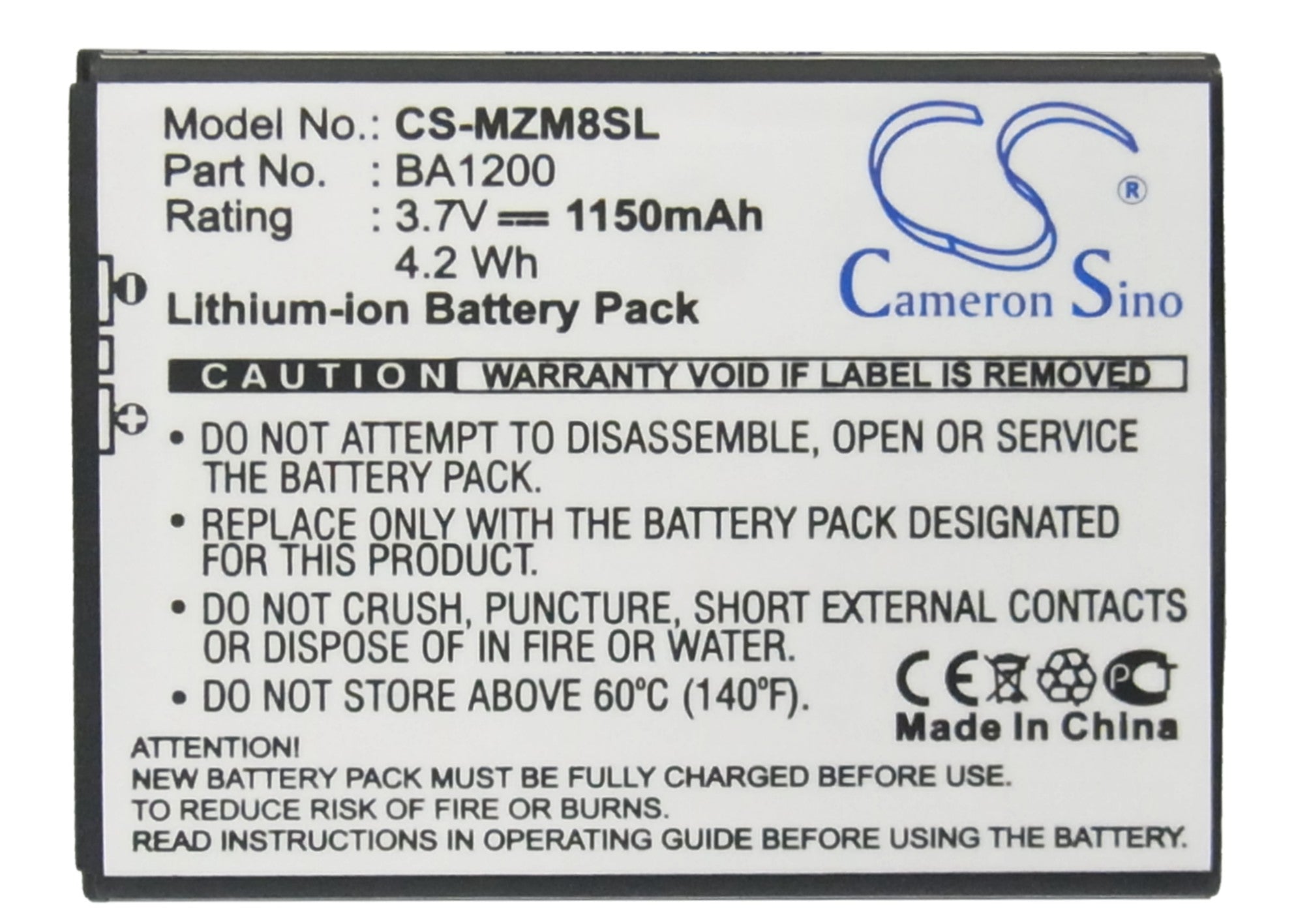 Battery for Meizu M8 16GB BA1200, BA1300 3.7V Li-ion 1150mAh / 4.26Wh