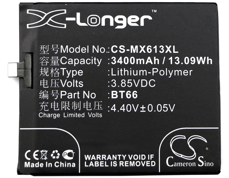 Battery for Meizu M96 BT66 3.85V Li-Polymer 3400mAh / 13.09Wh