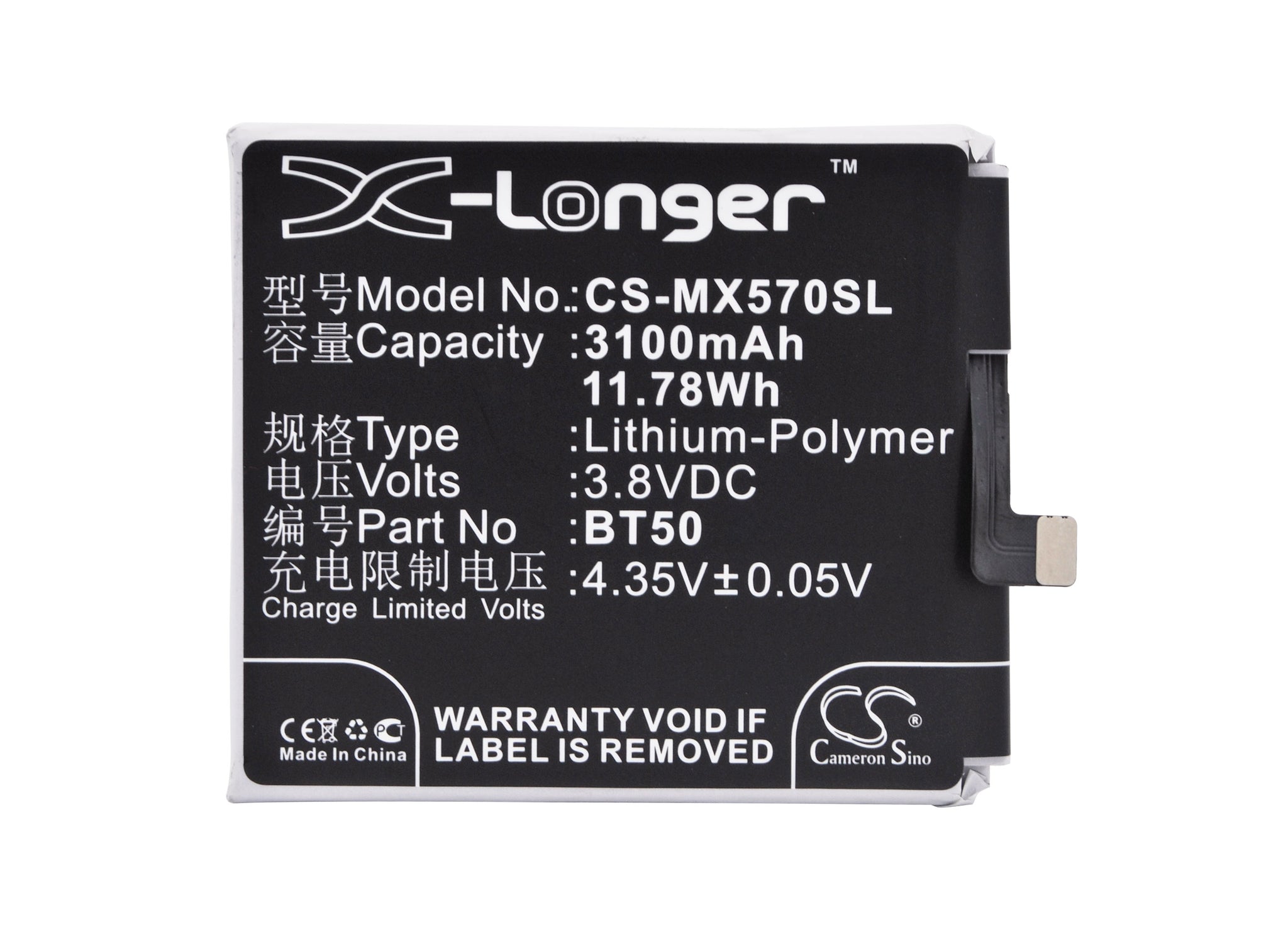 Battery for Meizu Meilan Metal BT50 3.8V Li-Polymer 3100mAh / 11.78Wh