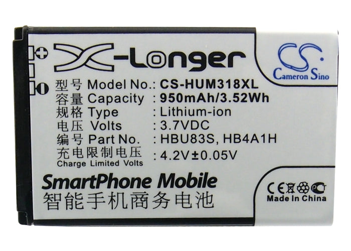 Battery for MetroPCS Pinnacle2 HB4A1H, HBU83S 3.7V Li-ion 950mAh / 3.52Wh