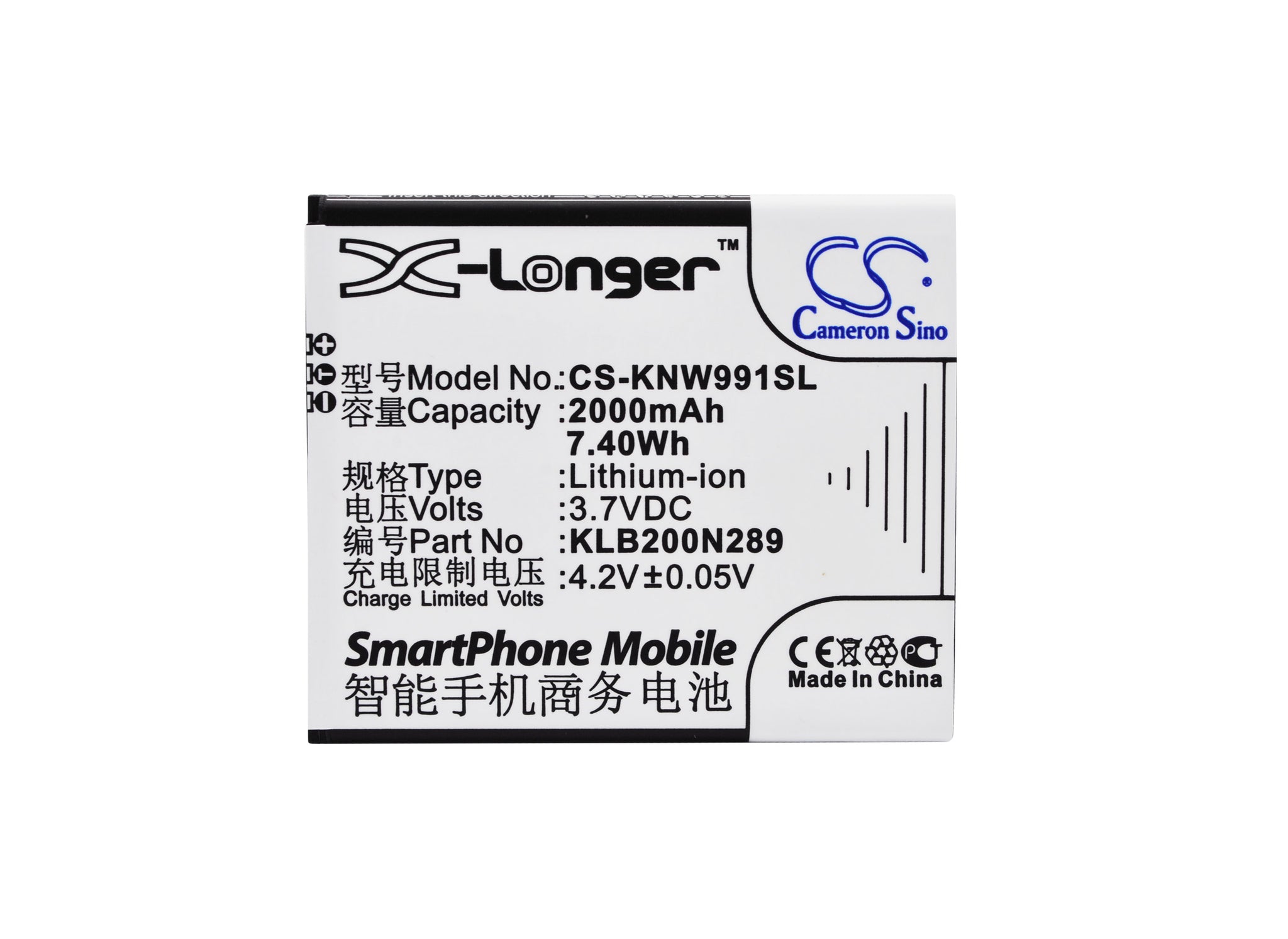Battery for Modelo Zonda Mega ZA950 KLB200N289 3.7V Li-ion 2000mAh / 7.40Wh