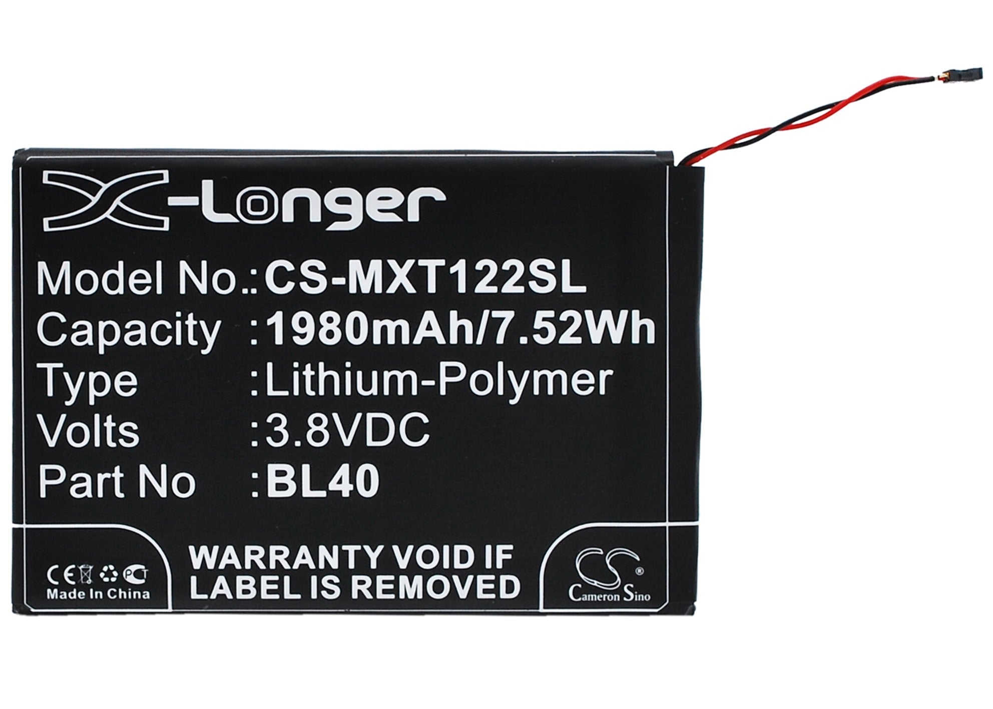 Battery for Motorola Moto E Dual TV BL40 3.8V Li-Polymer 1980mAh / 7.52Wh