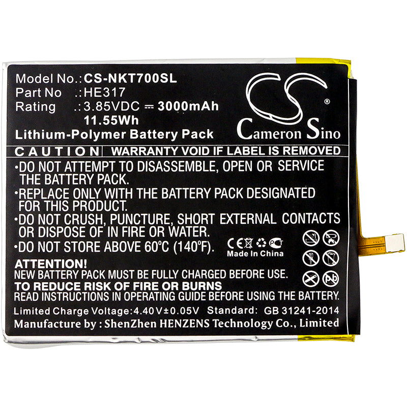 Battery for Nokia 7 Premium Edition Dual SIM HE317 3.85V Li-Polymer 3000mAh / 11