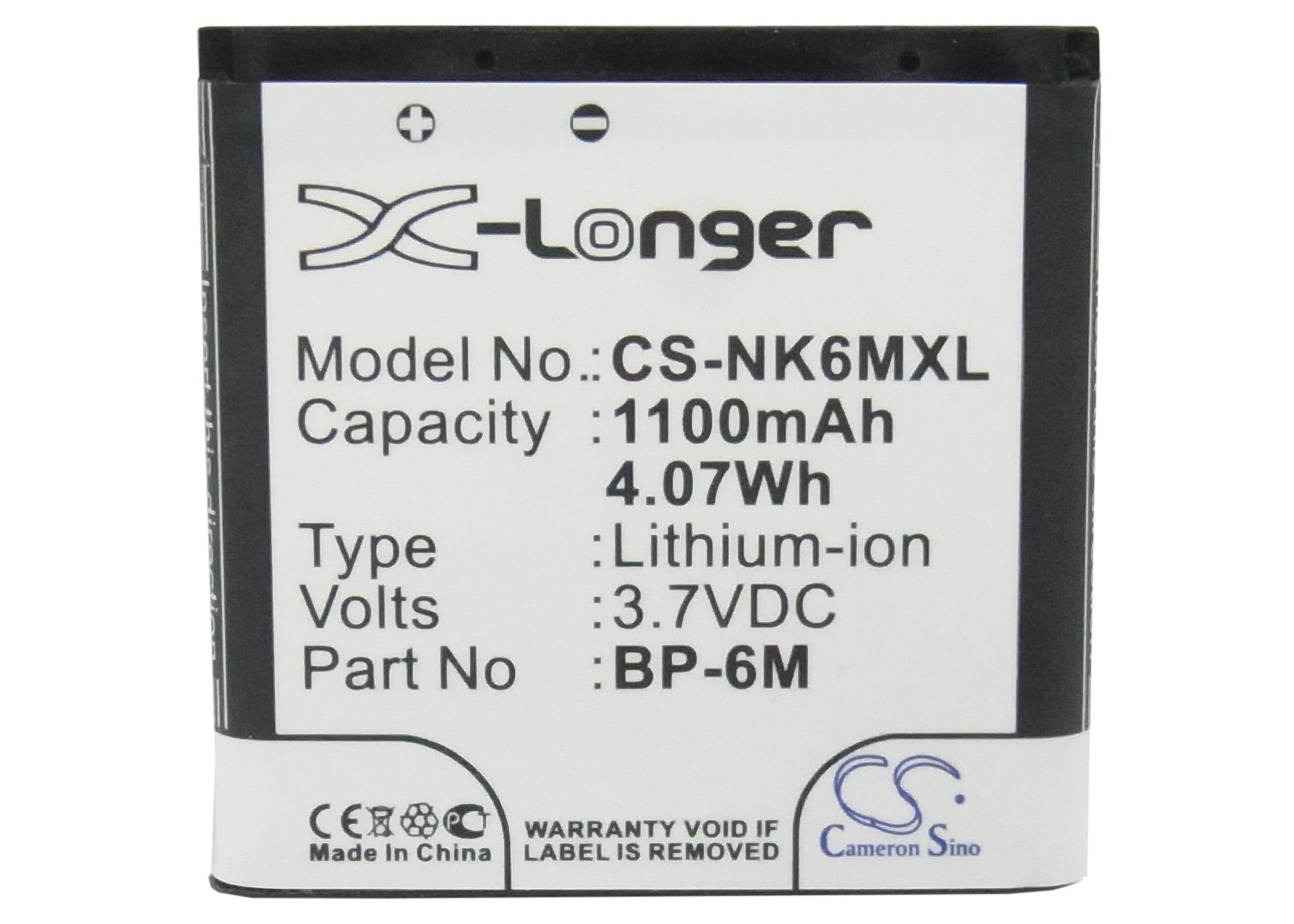 Battery for Nokia 9300 BP-6M 3.7V Li-ion 1100mAh / 4.07Wh