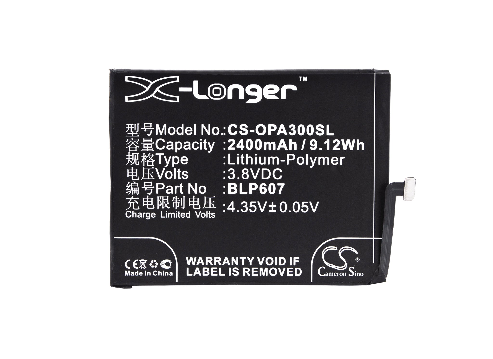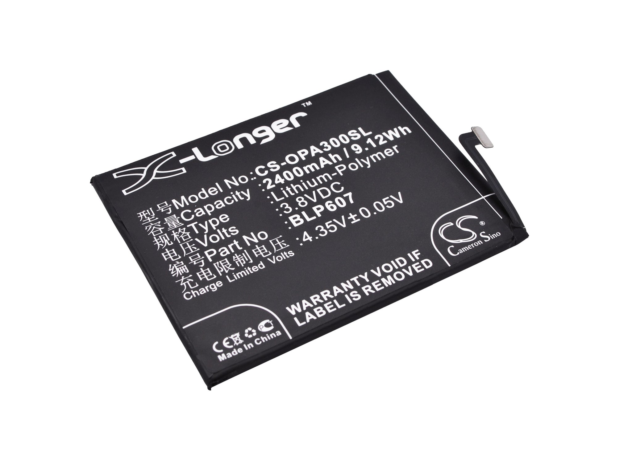 Battery for OPPO A30 Dual SIM TD-LTE BLP607 3.8V Li-Polymer 2400mAh / 9.12Wh